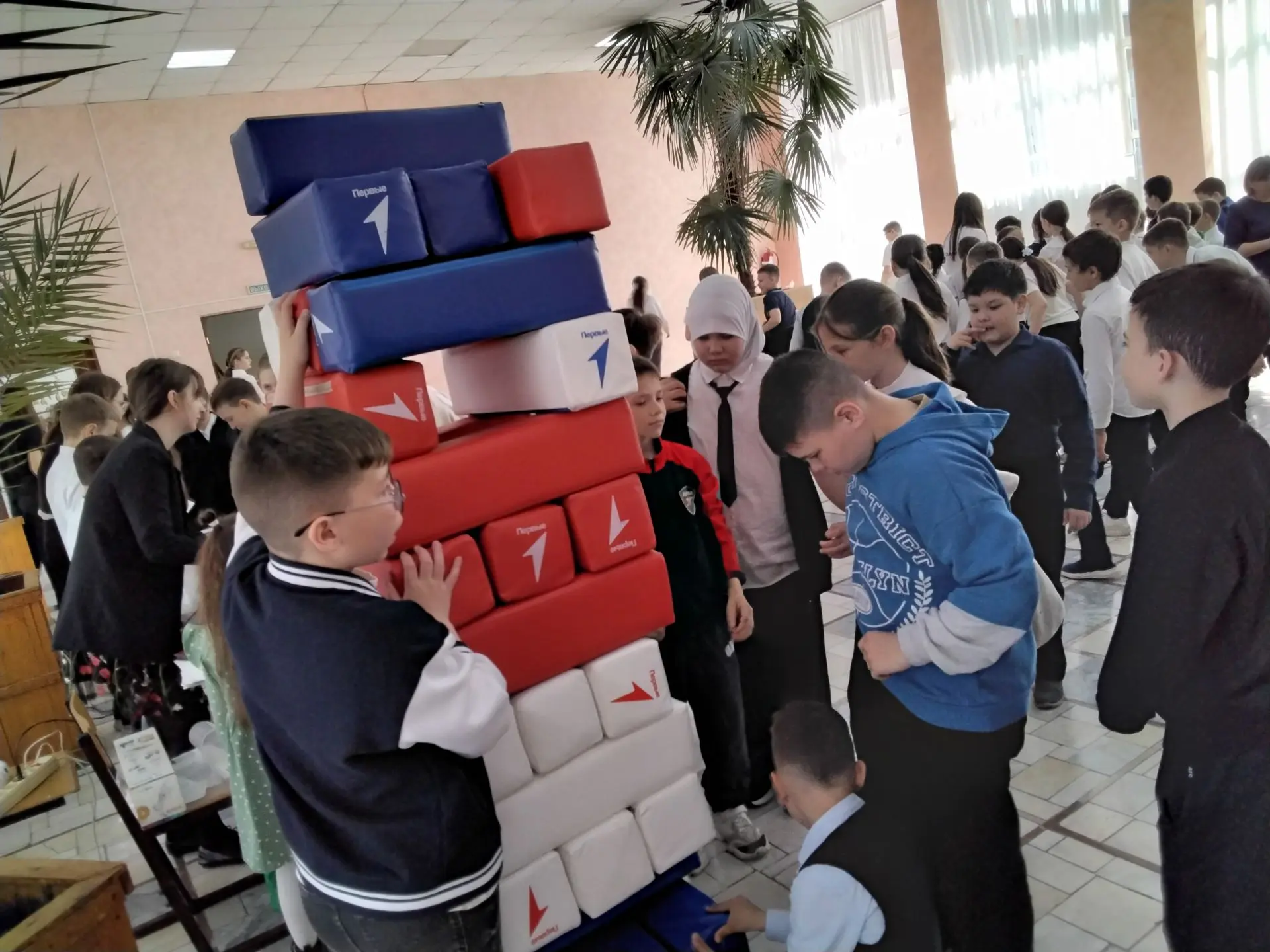 Активные и спортивные подростки участвовали в интерактивной экологической викторине с мячом и кеглями. Нужно было не просто сбить мячом кеглю, но и ответить на экологический вопрос, который находился под кеглей. Привлекла внимание игра «Дженга», где нужно по очереди вытаскивать по одному бруску из нижней части башни и устанавливать его наверху. Цель – не уронить конструкцию.