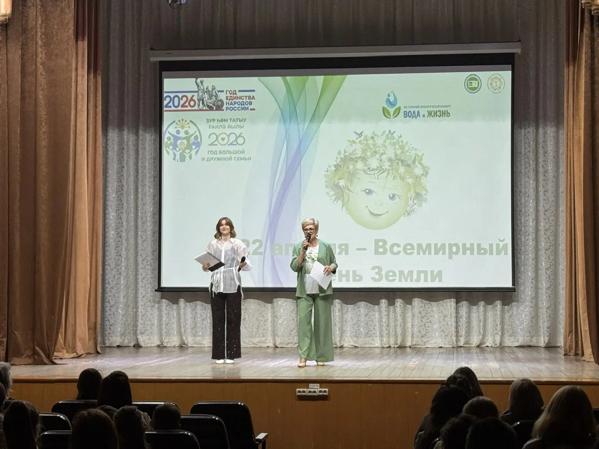 Фойе актового зала заполнили шумные и веселые голоса детей, для которых перед началом праздника были открыты разные познавательные экологические площадки. Ребята участвовали в мастер-классе по изготовлению бумаги из макулатуры и узнали, что полученную бумагу можно использовать для создания открыток, блокнотов, скрапбукинга и других поделок.