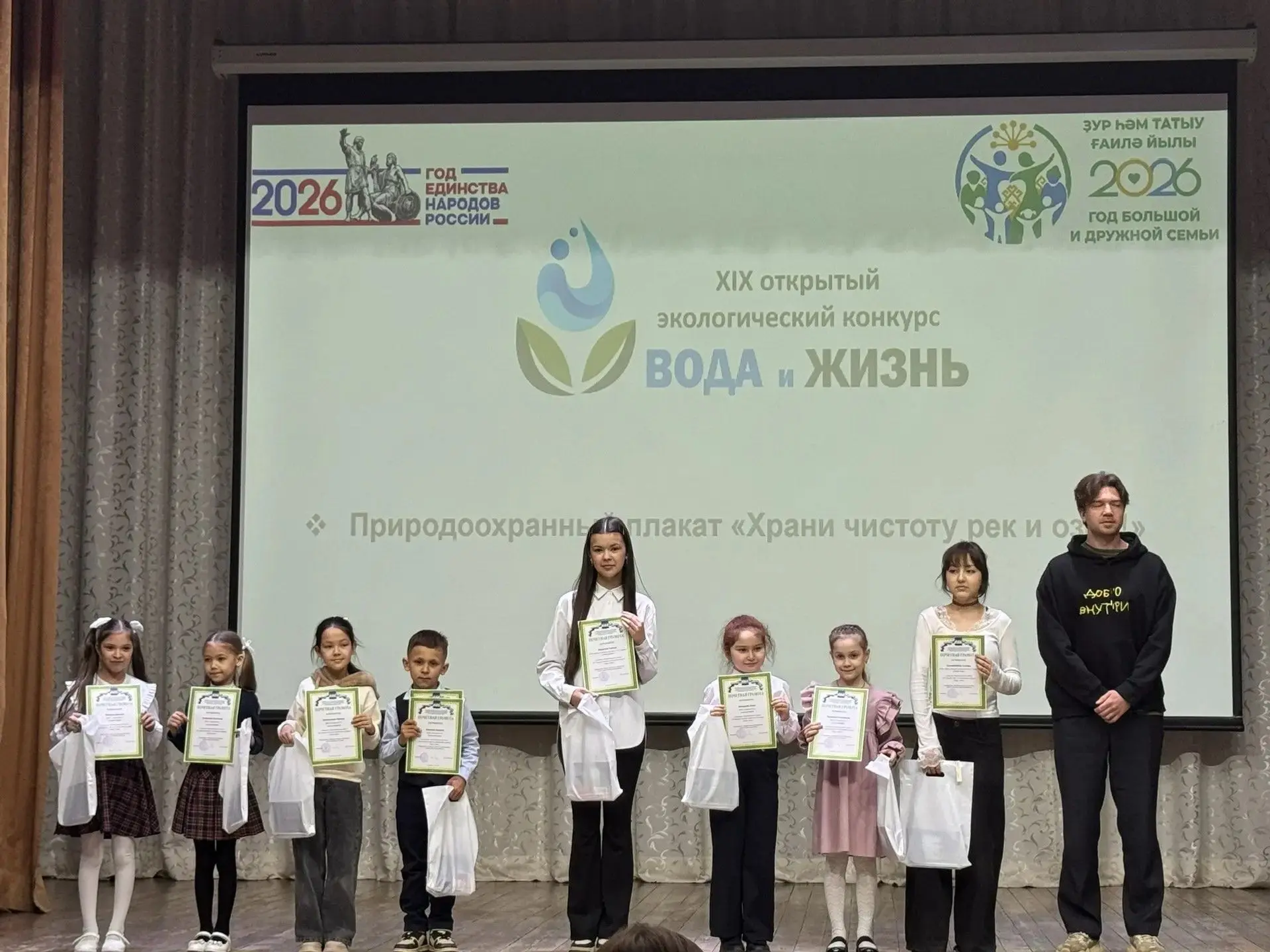 Церемония награждения прошла в торжественной обстановке. Гостей и участников конкурса приветствовали директор Дворца пионеров и школьников З.М. Баянова и координатор конкурса, заведующий отделом экологии Н.И.Киреева. Они поздравили всех с праздником и пожелали быть активными и ответственными гражданами своей Родины, выразили благодарность за участие в конкурсе «Вода и жизнь». Атмосферу праздника художественными номерами создали танцевальные и вокальные коллективы Дворца пионеров. Участникам конкурса вручили Почетные грамоты отдела Образования и памятные призы. Традиционно всех победителей и призеров разных номинаций конкурса ждала фотография на память. Организаторы конкурса "Вода и жизнь" желают всем нашим юным гражданам любить родной край и заботиться о своём городе, ведь в их руках – судьба нашей планеты Земля.