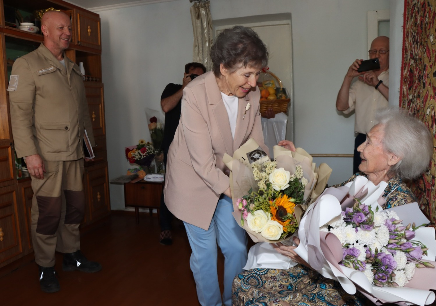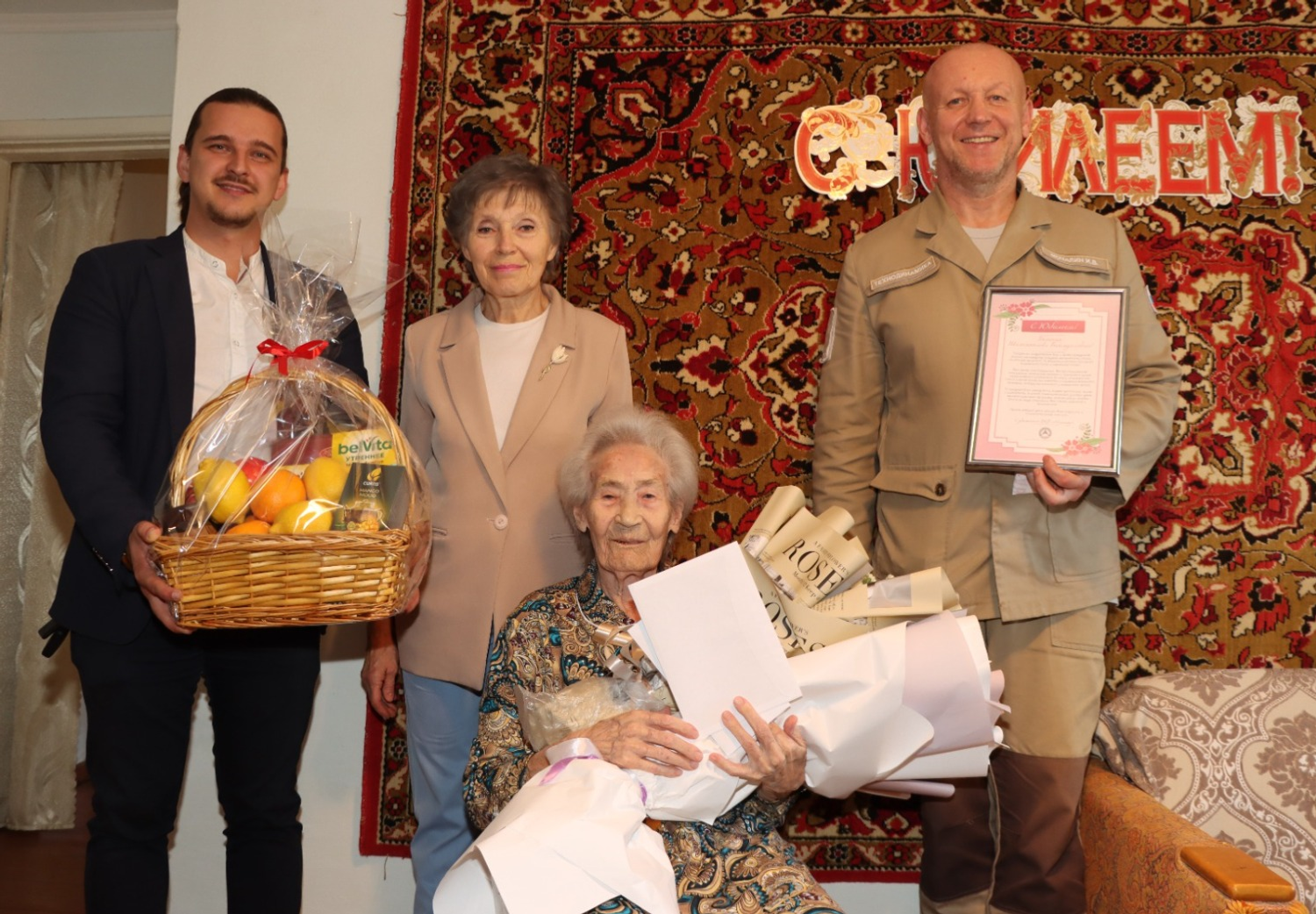 Сегодня поздравить юбиляршу с сотым днем рождения приехали первый заместитель генерального директора ФКП «Авангард» Игорь Валерьевич Мочалин, начальник отдела по внутренним коммуникациям Евгений Владимирович Куликов, представитель совета ветеранов предприятия Наталия Анатольевна Анчина. Они вручили имениннице подарки, цветы и поздравительные письма от президента России Владимира Путина и главы Республики Башкортостан Радия Хабирова.