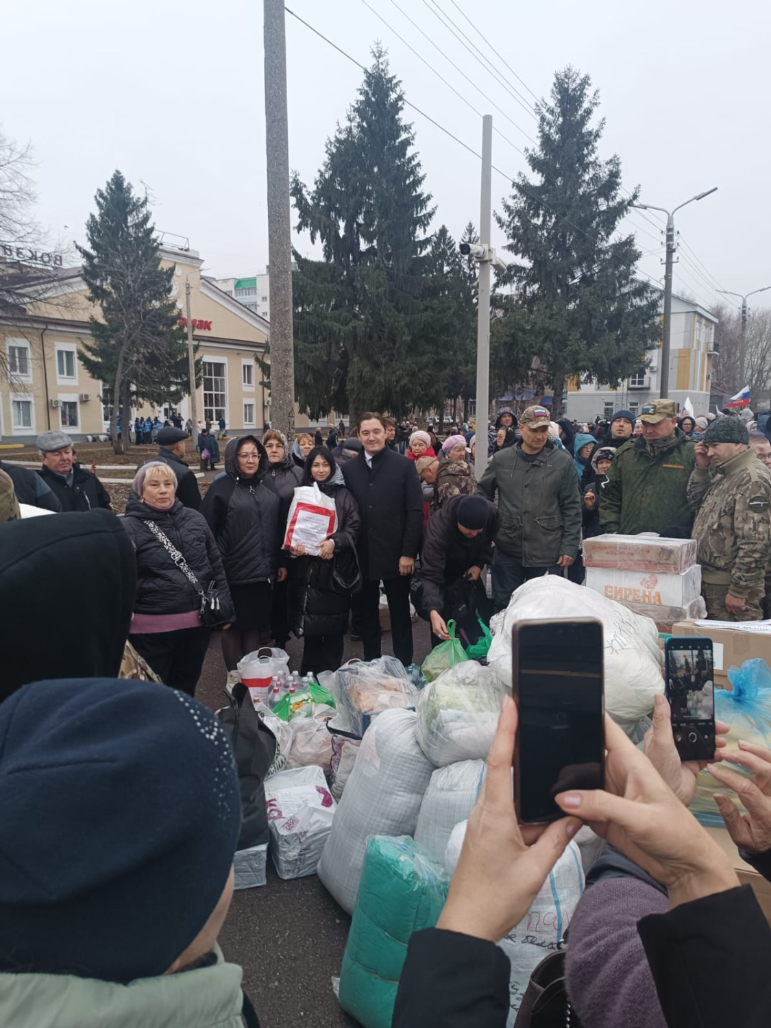 В целях безопасности вся собранная гуманитарная помощь при поддержке общественных организаций доставлена на распределительный пункт.