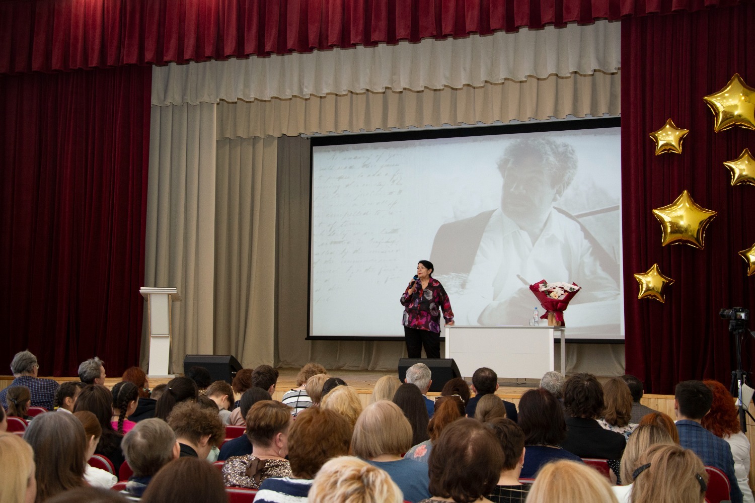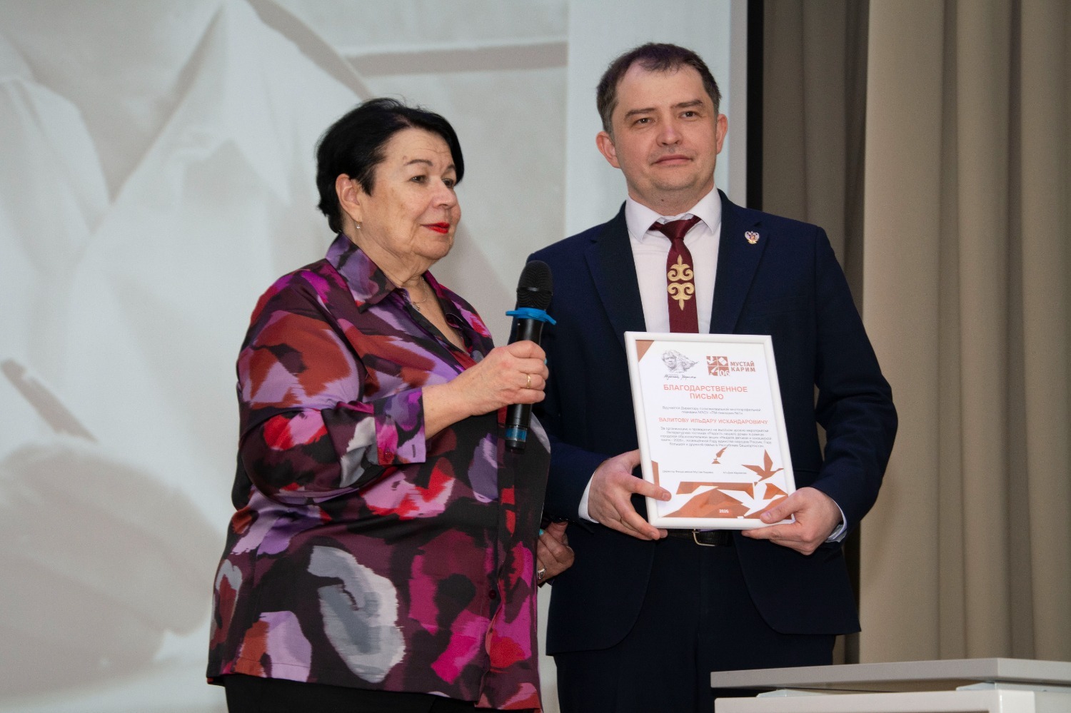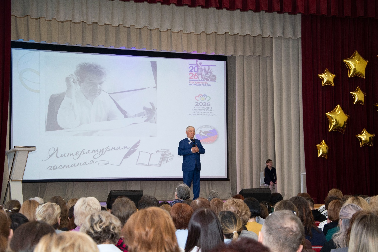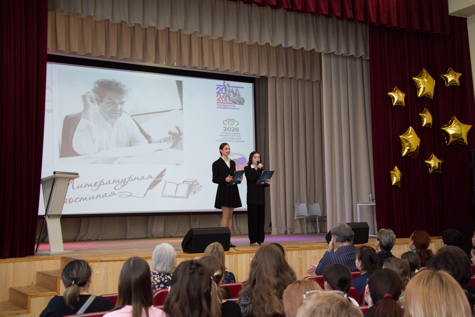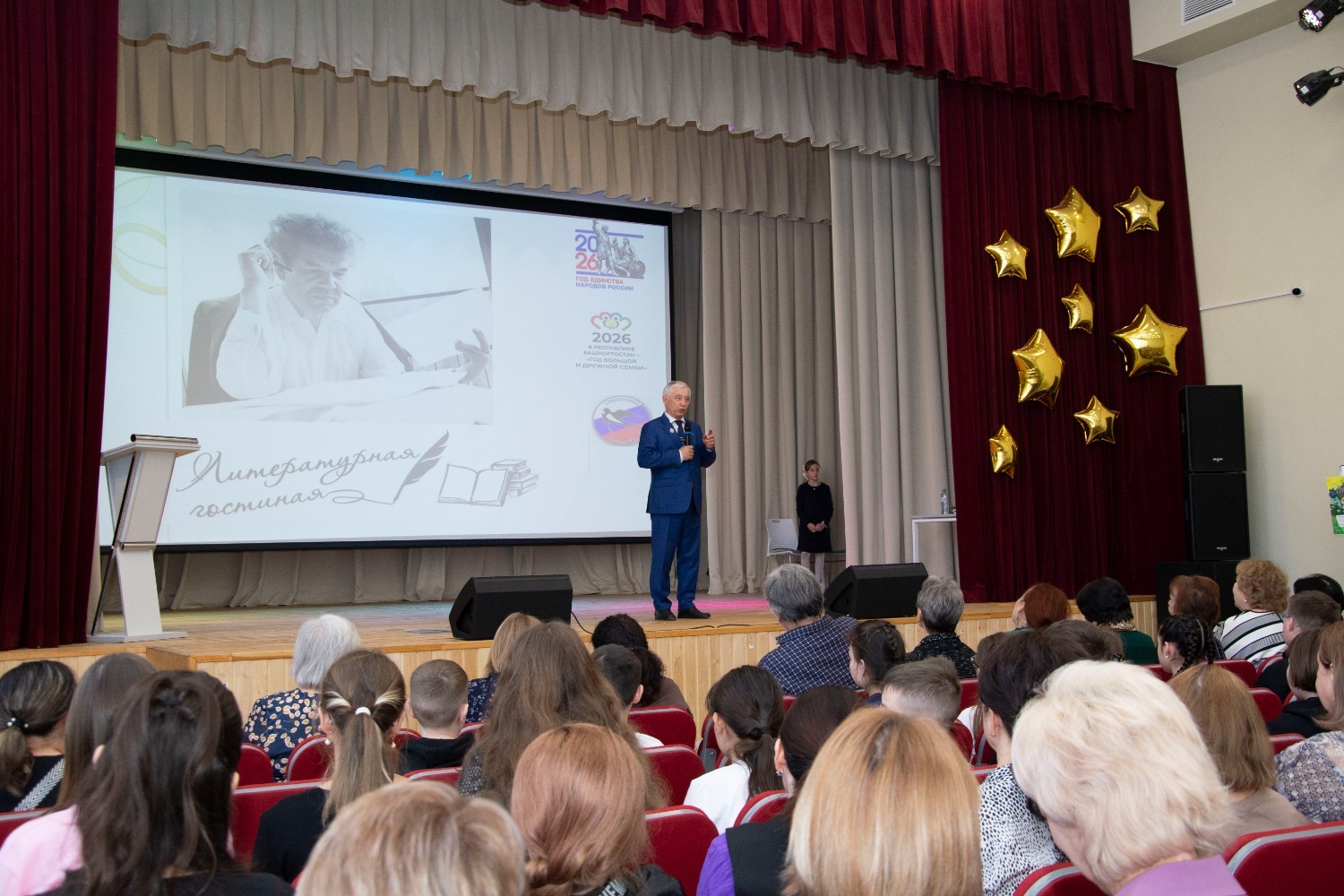 Как известно, этот год объявлен в России Годом единства народов, а в Башкортостане — Годом большой и дружной семьи. Именно эти ценности пронизывают каждую строчку творчества Мустая Карима. Приветствуя гостей, советник главы администрации города, почётный гражданин города, заслуженный учитель России и Башкортостана Риф Тажиев отметил, что для гимназии, которой в этом году исполняется 35 лет, это большая честь встречать их в стенах этого учебного заведения. «Из них второй учебный год мы работаем в этом корпусе, — сказал он в частности. — У нас большие перспективы. Мы стали полилингвальной школой».