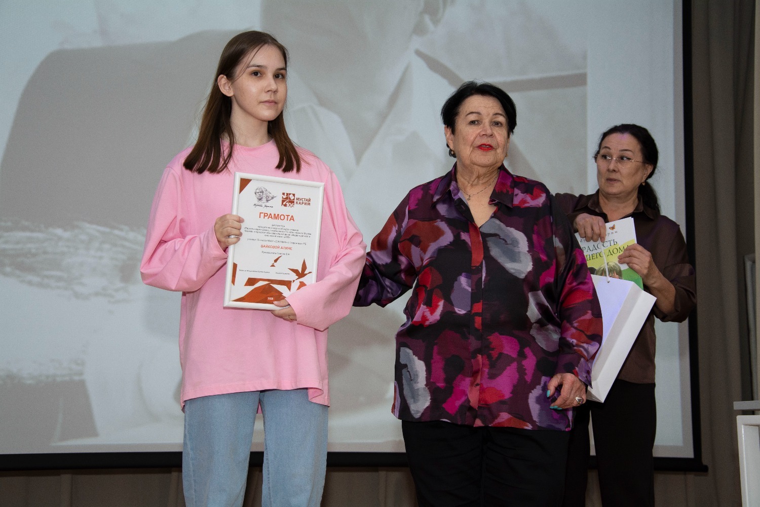В полилингвальной многопрофильной гимназии № 1 в рамках Всероссийской недели детской и юношеской книги состоялась встреча в литературной гостиной «Радость нашего дома». В мероприятии, посвящённом великому мастеру слова, классику башкирской и российской литературы, народному поэту Башкортостана Мустаю Кариму, приняли участие почётные гости. В их числе — дочь поэта, директор Фонда им. М. Карима Альфия Мустаевна Каримова, заслуженный работник культуры России, редактор журнала «Уфа» и газеты «Уфимские ведомости» Галина Ишмухаметова, директор издательства «Инеш» Гульнара Белозёрова, сценарист, переводчик, заслуженный деятель искусств РБ, председатель Союза кинематографистов РБ Зухра Буракаева, главный редактор газеты «Истоки», поэт и драматург Айдар Хусаинов, представитель фонда им. М. Карима Нафиса Билалова, начальник отдела образования администрации города Ильшат Кутлушин, заведующая отделом Информационно-методического центра Ольга Петровна Алиева, директор гимназии, почётный работник воспитания и просвещения РФ, отличник образования РБ Ильдар Валитов.